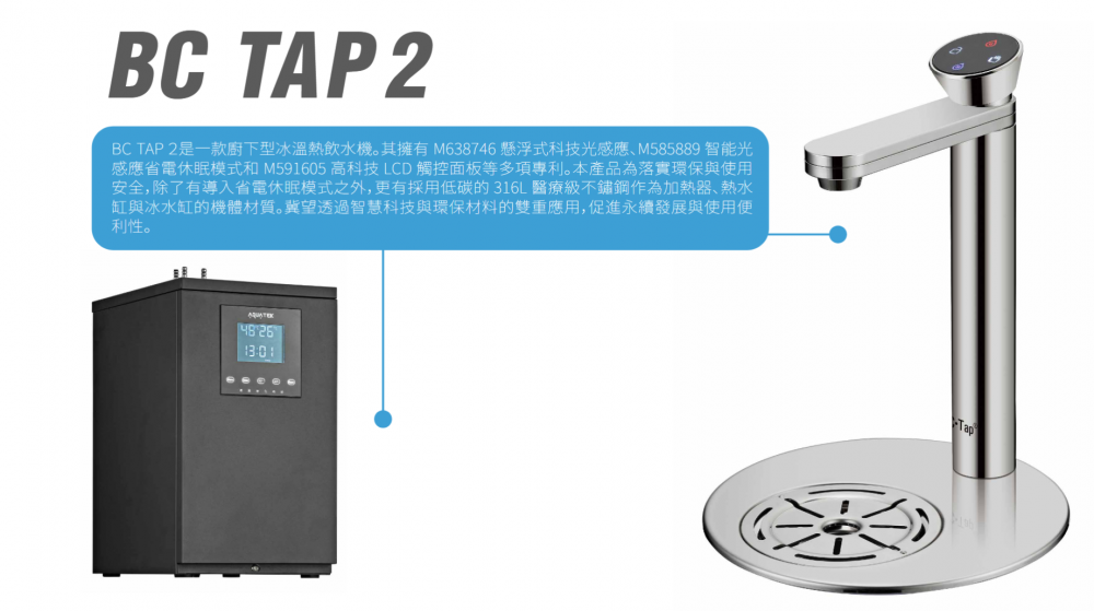 | 產品型號 | BC TAP 2 S 雙溫(冷熱) | BC TAP 2 SC 三溫(冰冷熱) | ||