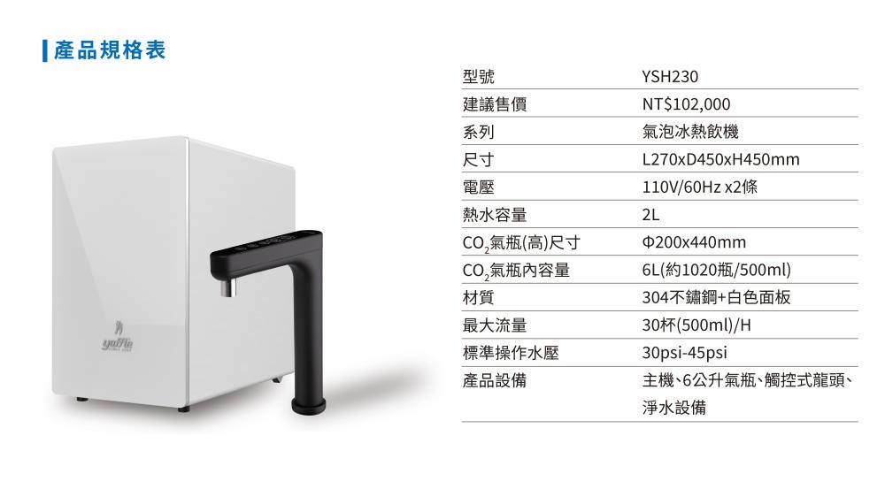 【亞爾浦】YSH230櫥下型家用氣泡冰熱飲機